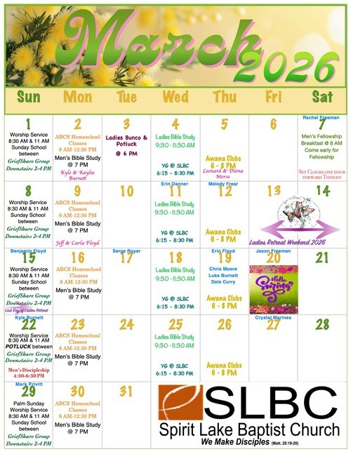 Because Ladies Retreat is falling on the third weekend in March, we rescheduled our monthly Potluck Brunch to next weekend, Sunday, March 22nd.