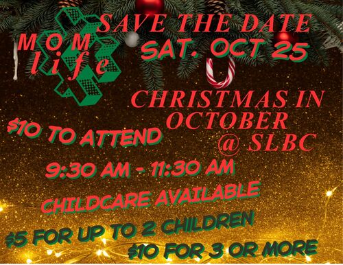 Saturday, October 25th from 9:30 AM to 11:30 AM here at SLBC all moms of babies and younger children are invited to come.