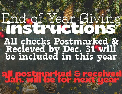 Please be sure that any gifts you would like included in this year, 2025, are postmarked by December 31st or received by us by December 31st.